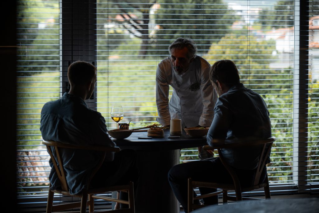 Over the years, Pepe has been accentuating his style, a way of understanding cuisine that is born in the landscape of his beloved Galicia and in his memory. A memory that is linked to the craftsmen of the sea and the land because Pepe was born in a restaurant overlooking the sea. Nestled in the Galician countryside surrounded by small farms, leiras where the locals worked for their own supply. He grew up watching his parents cook seafood and fish from their Atlantic and his grandmother vegetables from their farm, and these two sources of supply had long since become the main protagonists of his menus. As a result of Solla’s joint work with Roberto, from Artesans da Pesca, his main supplier of everything that comes from the sea, they have managed to improve some aspects such as stress-free slaughtering or bleeding for the fish. With the development of these practices, they have achieved greater respect for the product and ensured that it reaches the diner with the best quality without the slightest intervention. For vegetables, at Casa Solla they source their produce from several organic or biodynamic gardens. They give up having their own vegetable garden to promote the development of rural areas, generate an economy around them and be able to have a greater and better supply of vegetables.