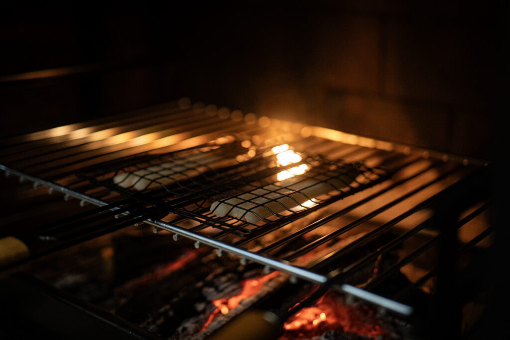 Para Pepe, “no se trataba solo de hacer otro menú o cambiar el precio. Quería desarrollar un concepto distinto. Una cocina con identidad propia, que respira al ritmo de las brasas, sin artificios, sin romper con lo que ocurre en el restaurante gastronómico, pero sí con la libertad de tener su propia idiosincrasia. Así surgió la idea de instalar una pequeña cocina, junto a la lareira. Para poder crear algo nuevo a partir de lo antiguo. Una cocina independiente, que pudiera tener su propio horario, que no interrumpiera la vida del restaurante, y que respetara ese espacio original de reunión y calor”.